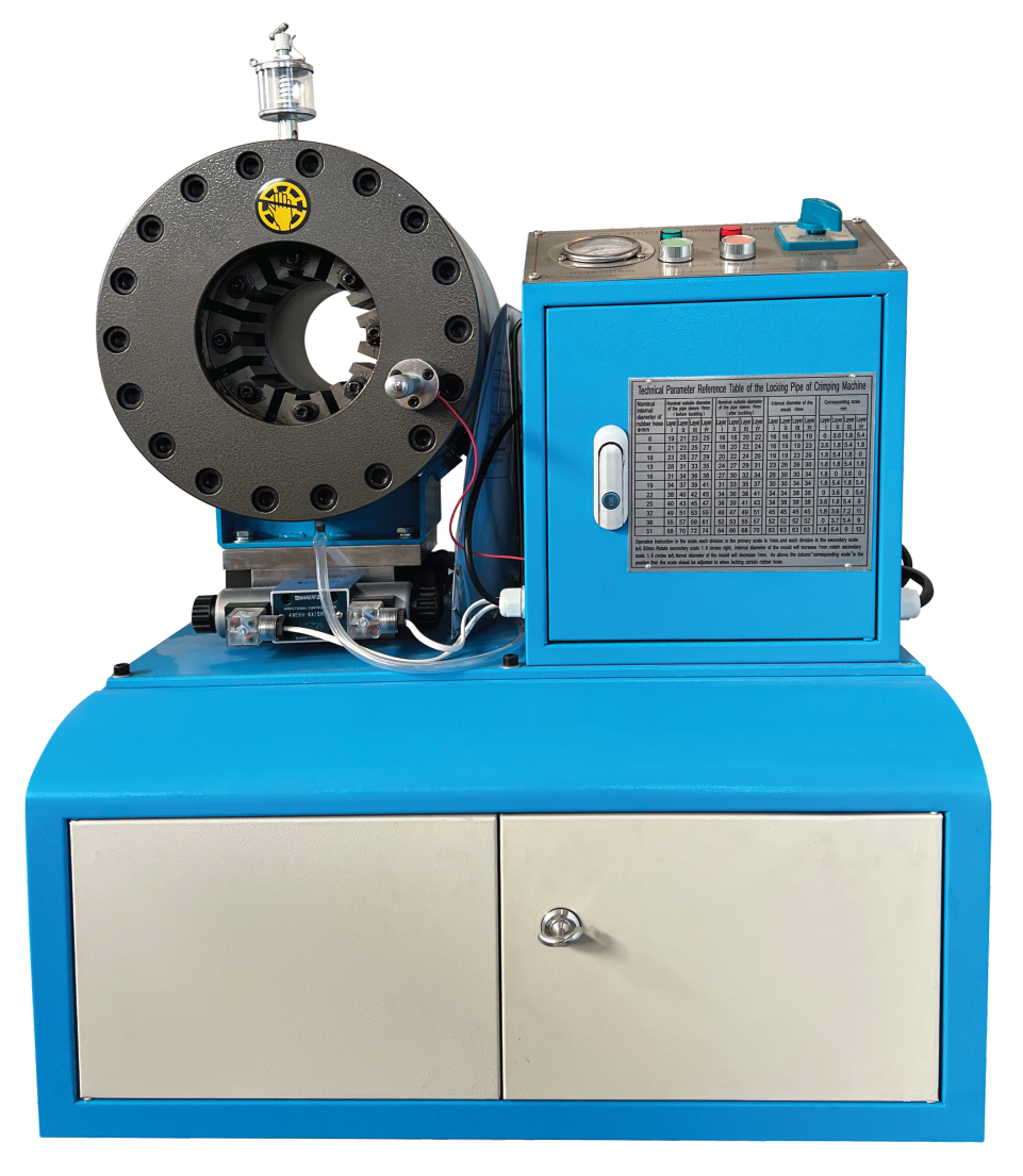 根(gēn)據所扣壓膠管的規格,按鎖管技術參數參考表選擇(zé)合適的模具安裝到模座上,並按表中數據調整好標尺位置即可鎖管。鎖管結束後,用卡尺測量扣壓後管套外徑尺寸(cùn)是(shì)否符合參數參考表數據,如不(bú)符,則精調標尺,直至符合要求為止(zhǐ)。因(yīn)管套的生產廠家不同,其具體尺寸、材質、硬度等不盡相同,這些(xiē)因(yīn)素都會對鎖管結果(guǒ)造成不同程度的影響,因此,表中數據(jù)僅供參考,詳細數據以壓力試驗為依據。