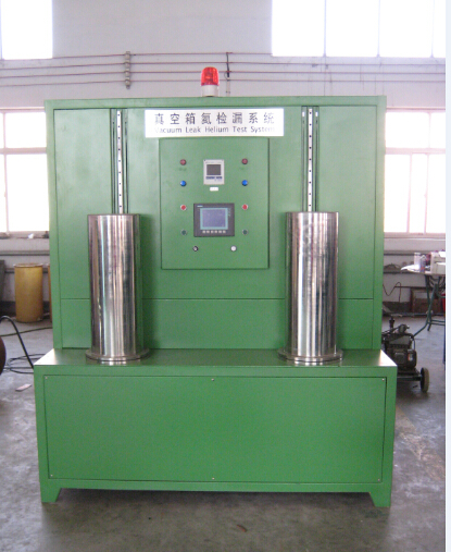 雙(shuāng)箱(xiāng)聯動箱(xiāng)外式氦檢漏真空箱檢漏係統主(zhǔ)要由真空罩、抽空泵組、檢漏儀抽空泵、檢漏儀、抽空閥、檢漏閥、充氣閥組成。